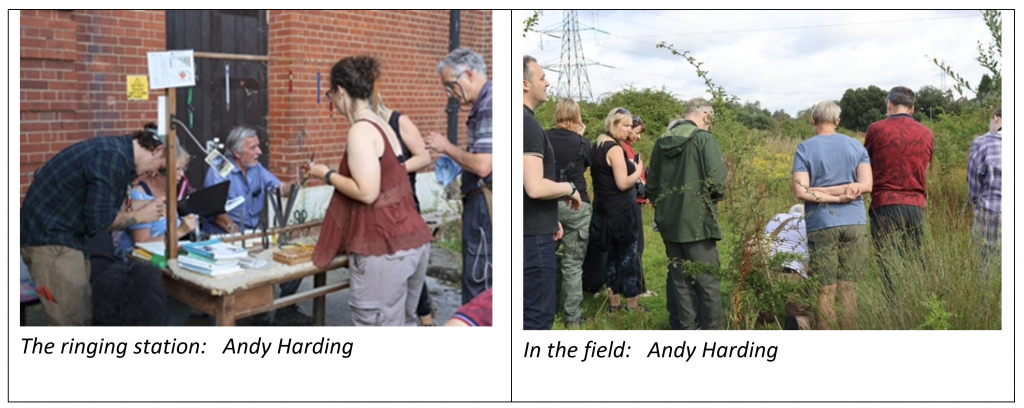 We were first shown some of the birds the Group had caught just before we arrived, including young Blackcaps, a Willow Warbler, Chiffchaff and a fairly aggressive juvenile Blue Tit! Surprisingly Blackcaps were currently the most abundant bird to be caught. It was a real privilege to see up close the difference between a Chiffchaff and a Willow Warbler – the much yellower plumage of the juvenile Willow Warbler self-evident. After a very informative briefing as to the history of the Group, how data is collected and recorded, changing bird numbers over the years and answering a myriad of questions, we were taken on a tour of the site visiting a number of mist net positions.