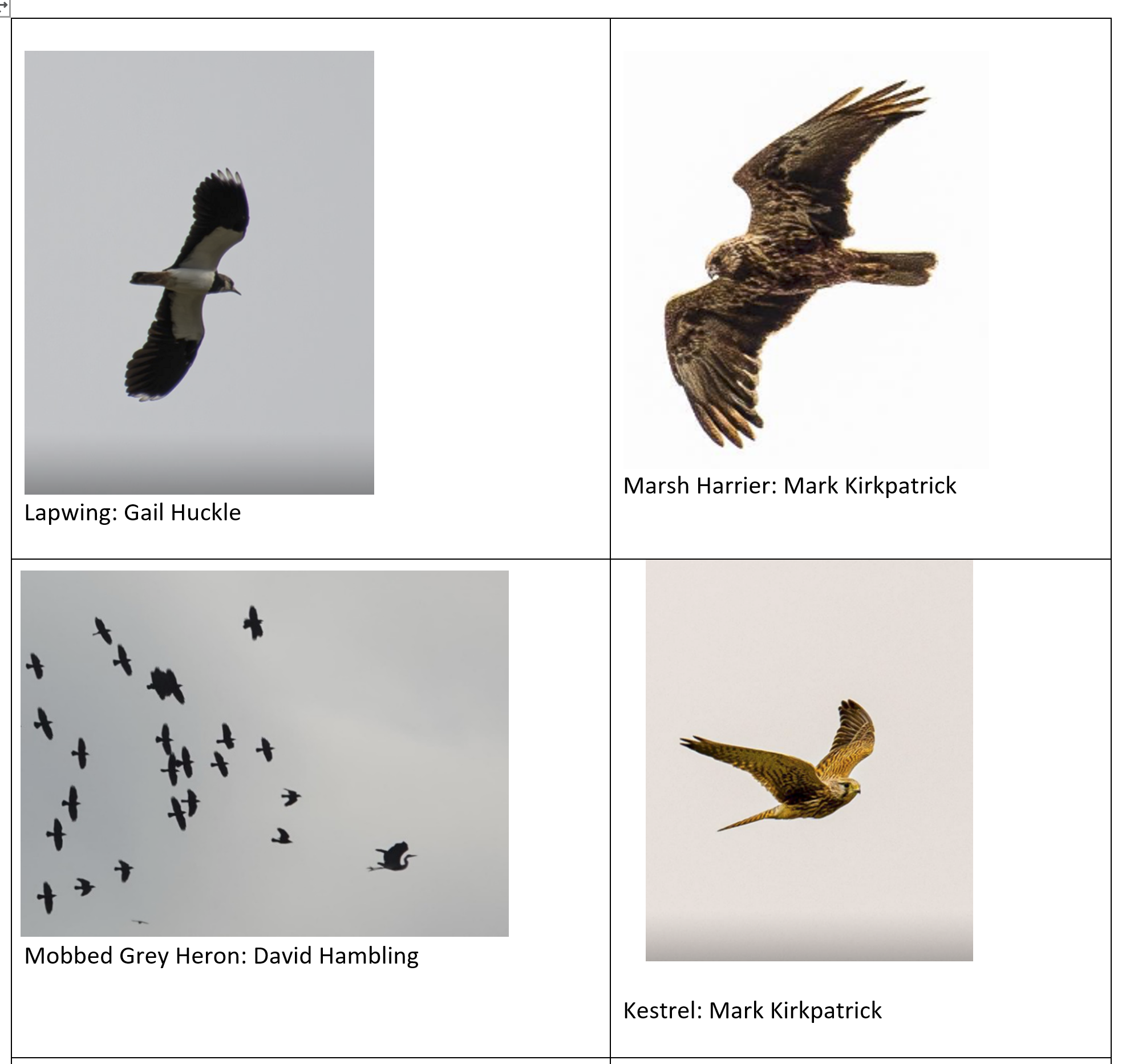 | Mute Swan | Northern Lapwing | Western Marsh Harrier | Redwing |