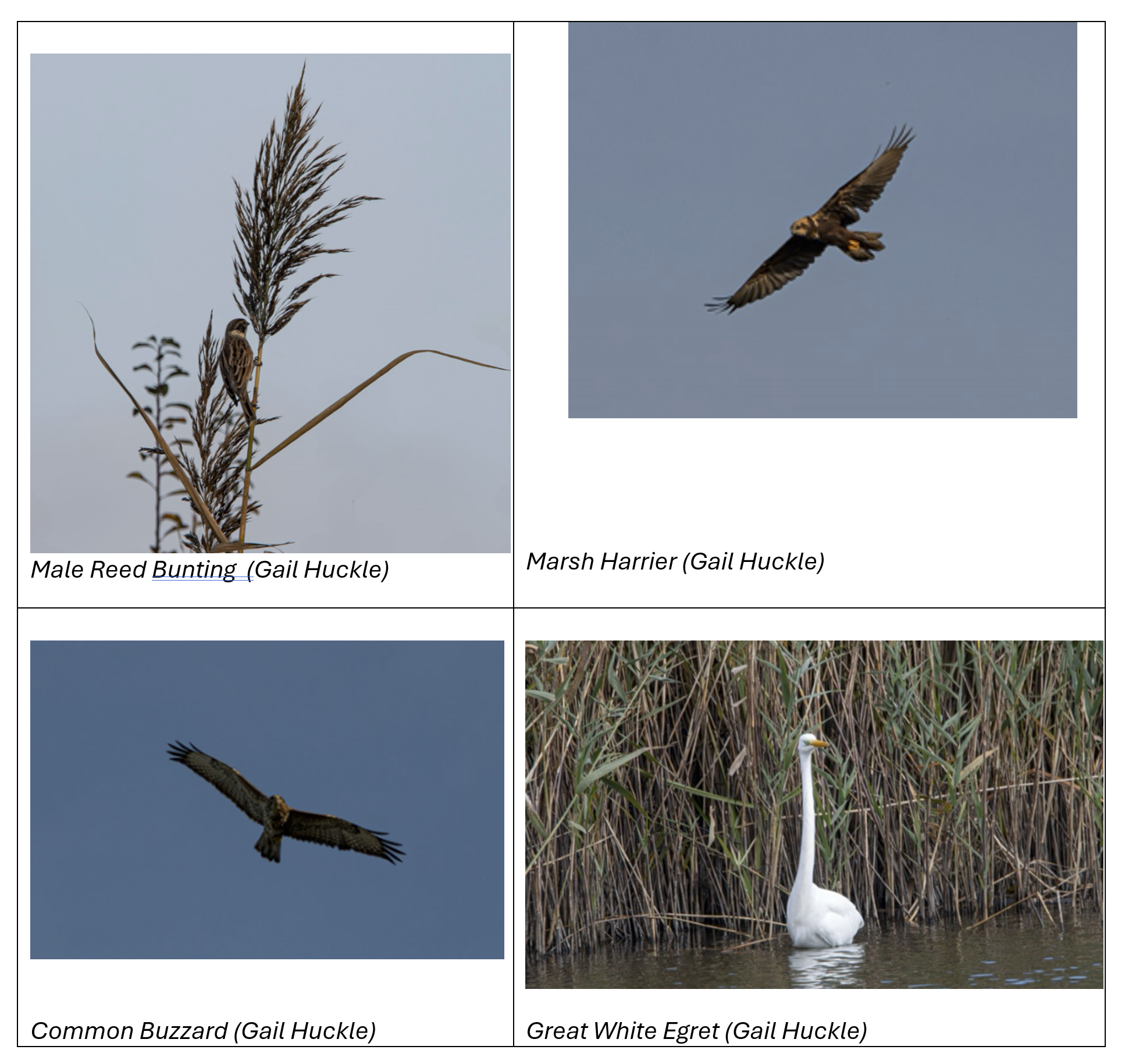 | Common Shelduck | Black-tailed Godwit | Common Buzzard * | Fieldfare |