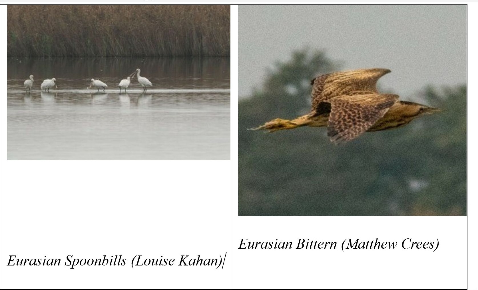 | Eurasian Coot | Eurasian Spoonbill | Bearded Tit | Corn Bunting + |
