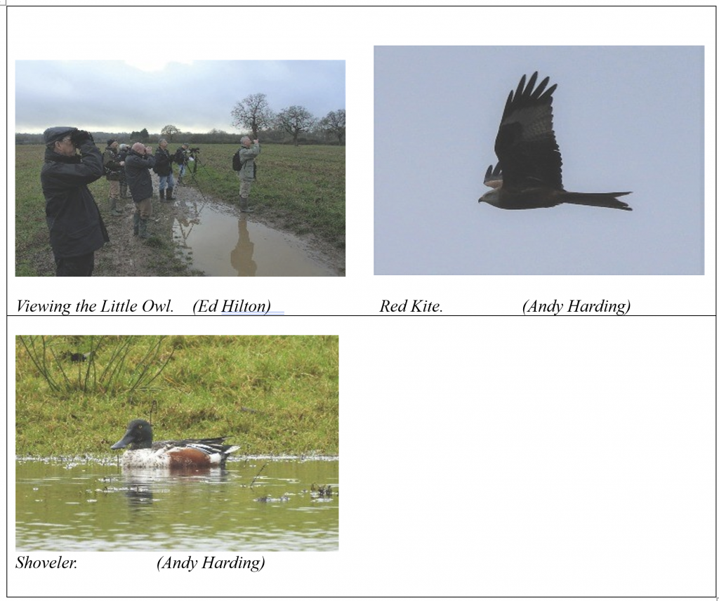 Having met at Mercers Country Park and scanned Mercers Lake seeing Tufted Duck, Great Crested Grebes and Black-headed and Herring Gulls, we were treated to both a Red Kite and a Sparrowhawk high beyond the car park, the latter being harassed by a Carrion Crow. Within a minute of leaving to head over to Spynes Mere, Gordon had found a very well-camouflaged Little Owl in a mature oak adjacent to Mercers Farm. Everyone managed to get a view of this fantastic and elusive bird with many seeing it turn to look straight at us – a great start to the day!