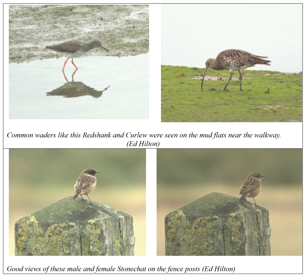 The sight and sound of the many hundred of Brent Geese was impressive and we also saw 2 Barnacle Geese , one of which is half of the odd-couple as it is paired to a large white ‘farmyard’ goose – a relationship which has been ongoing for at least 5 years!