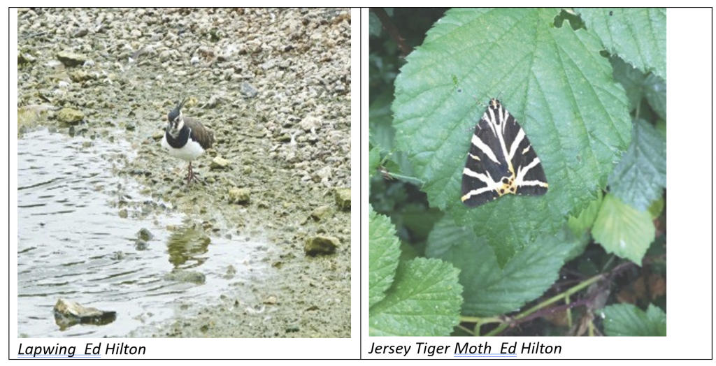 After passing the entrance we made our way to the hide with the view of the Sand Martin bank. On the way we all had good views of a Jersey Tiger Moth and most of the group took a photo. On getting to the hide, there were quite good views of the Sand Martins but there were no waders in front of the hide nor a Hobby nor Kestrel trying to catch the Martins. The volunteer from LWC had told us that this is an issue.