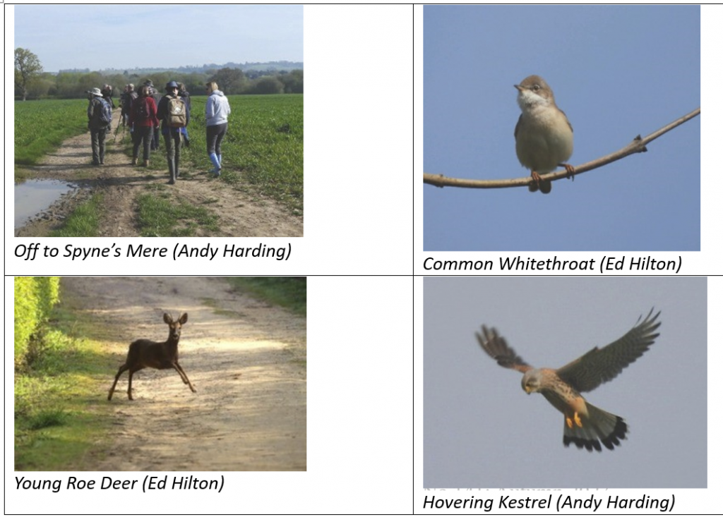 An abundance of warbler song made for interesting discussions as to Common Blackcap versus Garden Warbler, but listening carefully to the more structured song of the Blackcap versus the longer song with flutey and scratchy tones of the Garden Warbler, we all managed to distinguish the two songsters. We did manage to see a number of Blackcaps during the morning, but only caught a fleeting view of the Garden Warbler. Chiffchaffs, Cetti’s Warblers, Common and Lesser Whitethroats were all singing and calling in the surrounding scrub.