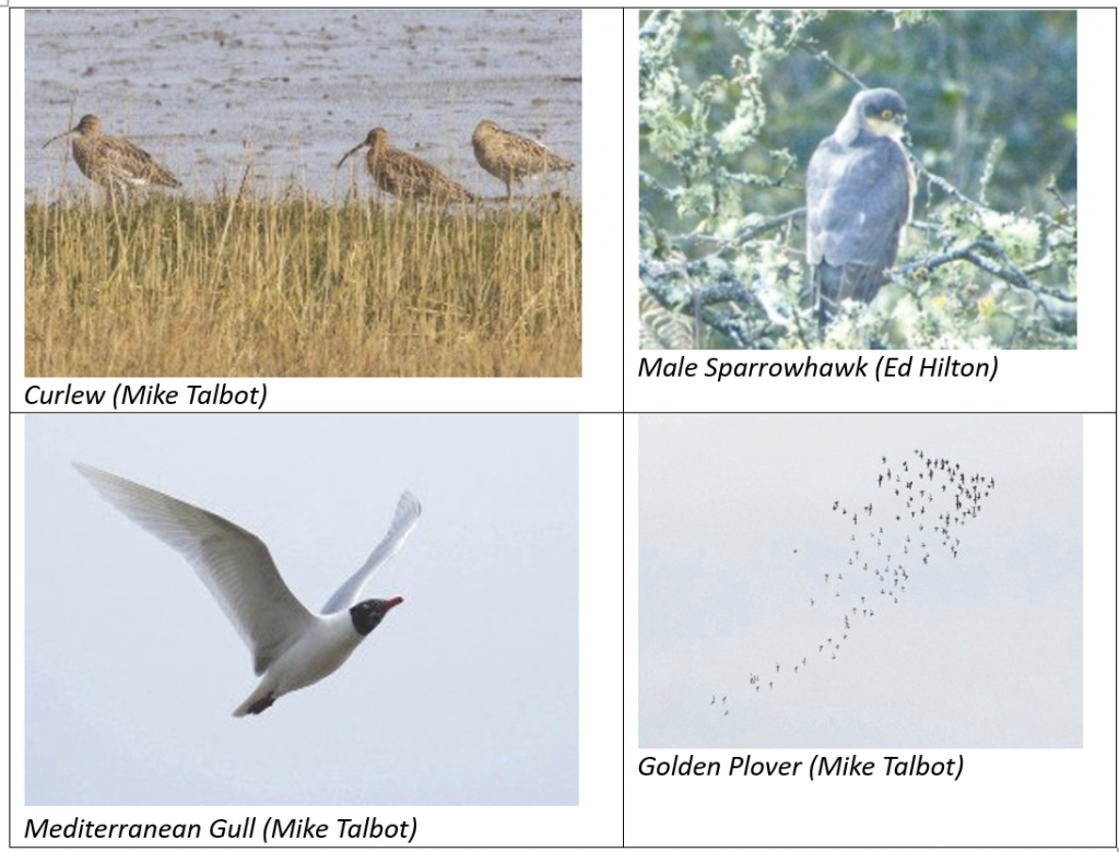 Ignoring the challenging weather forecast, 15 SBC members travelled south to the famous RSPB Pagham Harbour Nature Reserve with expectations for a great morning’s / day’s birding. We were not disappointed! The day was split into three venues :an early morning sea watch at Selsey Bill, a full walk along the West side of the Harbour from the Visitor Centre and an afternoon sortie along the main path at RSPB Medmerry.
