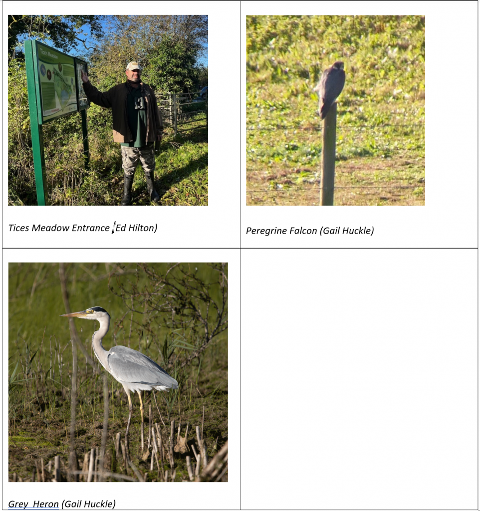 8 of us gathered at the entrance to Tice’s Meadow Nature Reserve, where we were met by Mark Elsoffer. It was a bright and sunny autumn morning which made a pleasant change to previous rainy visits.