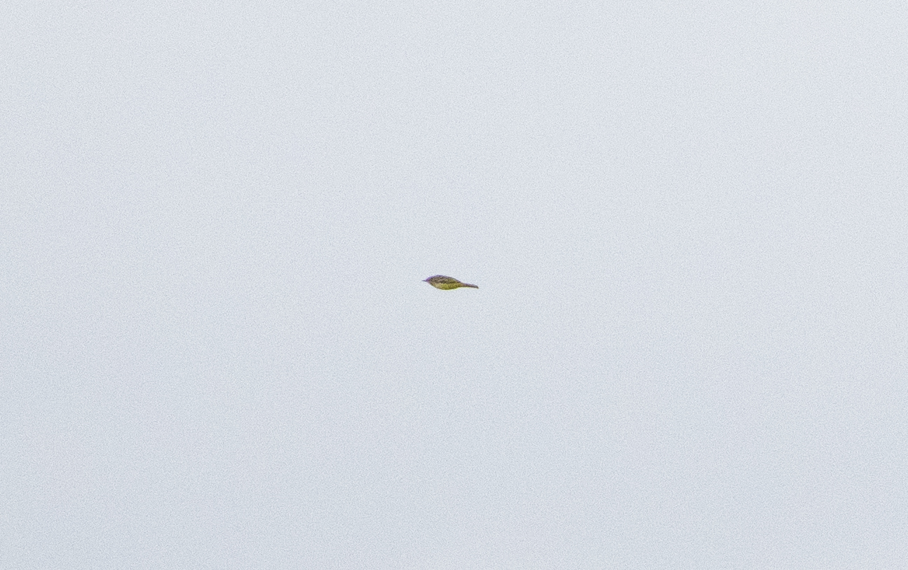 Shalford Water Meadows: Yellow Wagtail flew south (E Stubbs).
