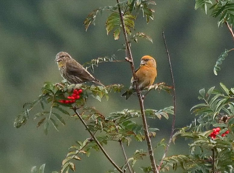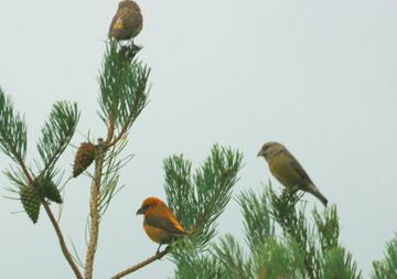 Frensham Great Pond: 2 Crossbills (E Stubbs).