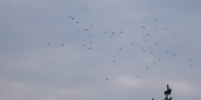Bricksbury Hill: 12 wader sp. (possibly Grey Plovers) flew south-west at 06:39 (G Stephenson).