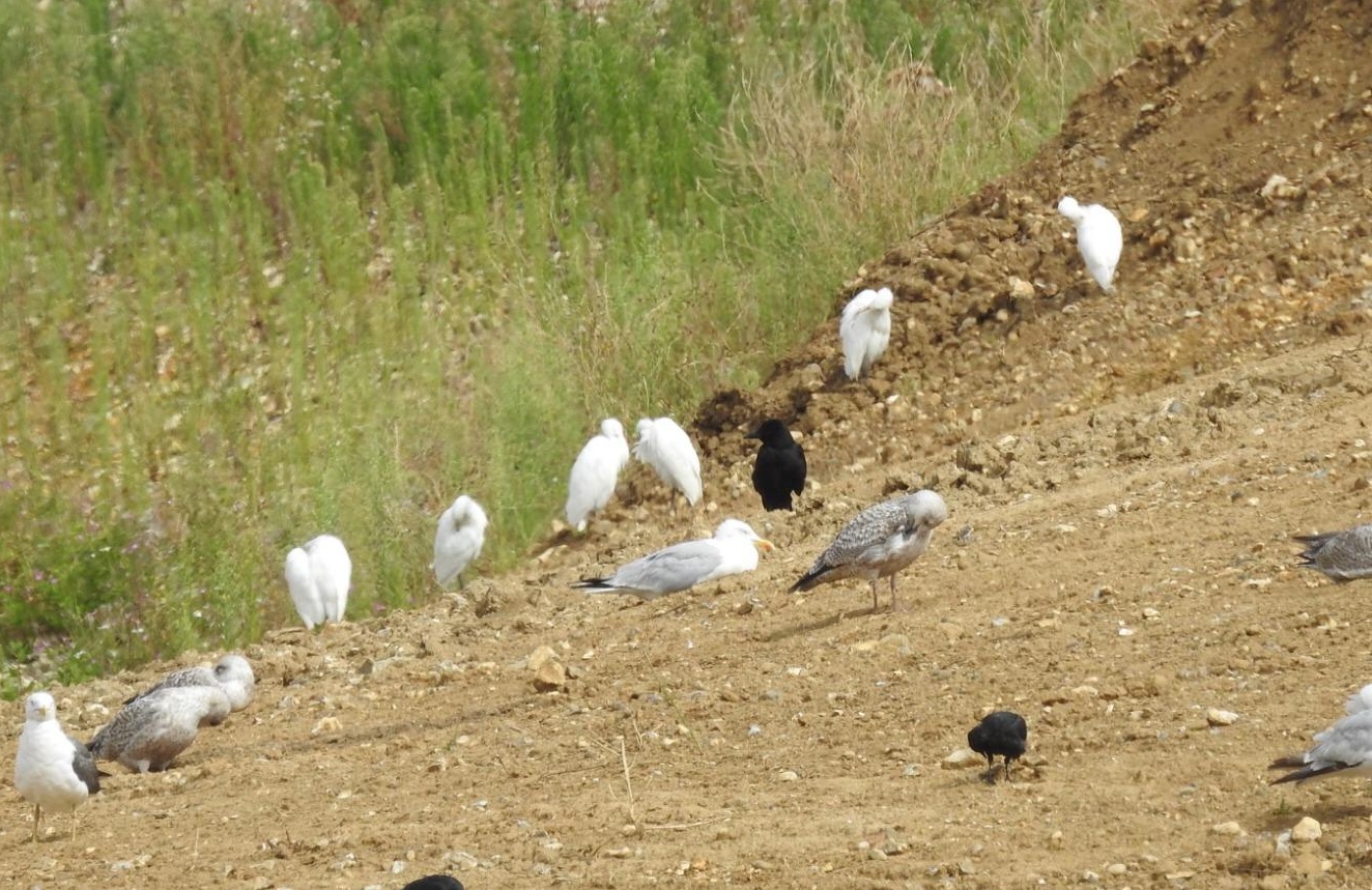 Tice’s Meadow: female-type Marsh Harrier flew west over The Meadow; also Great Egret again, 3 Ringed Plovers, 3 Yellow Wagtails, 2 Little Ringed Plovers and Wheatear (J Brough/J Hunt/R Seargent).