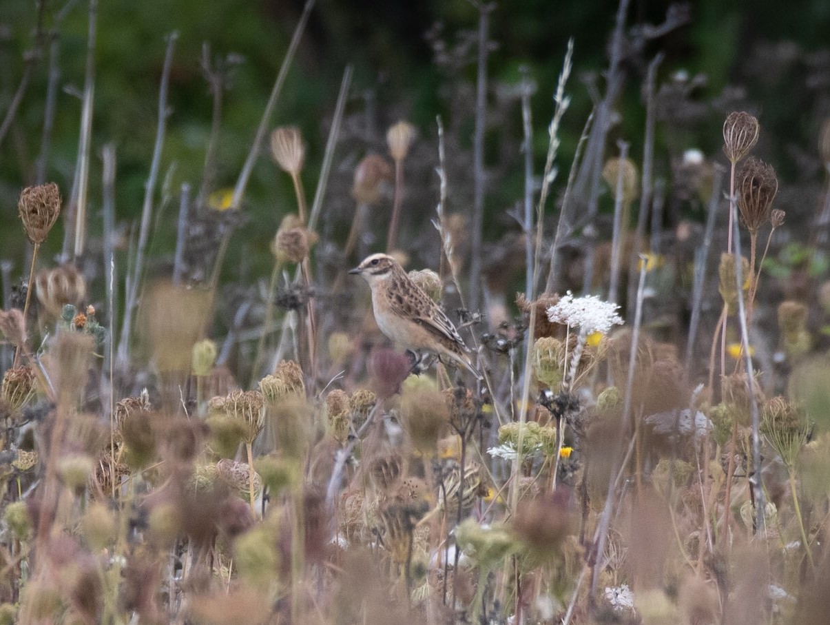Priest Hill: 3 Whinchats, Yellow Wagtail and Wheatear (S Gale/S Thomas).