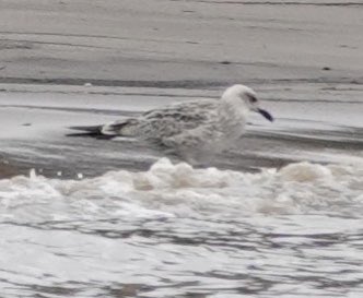 Rotherhithe: juvenile Caspian Gull on beach (BirdGuides).