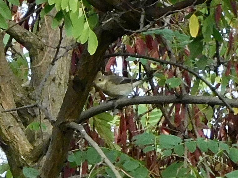 Richmond Park: Wood Warbler in tit flock at Pond Slade late morning (A Westenberger).