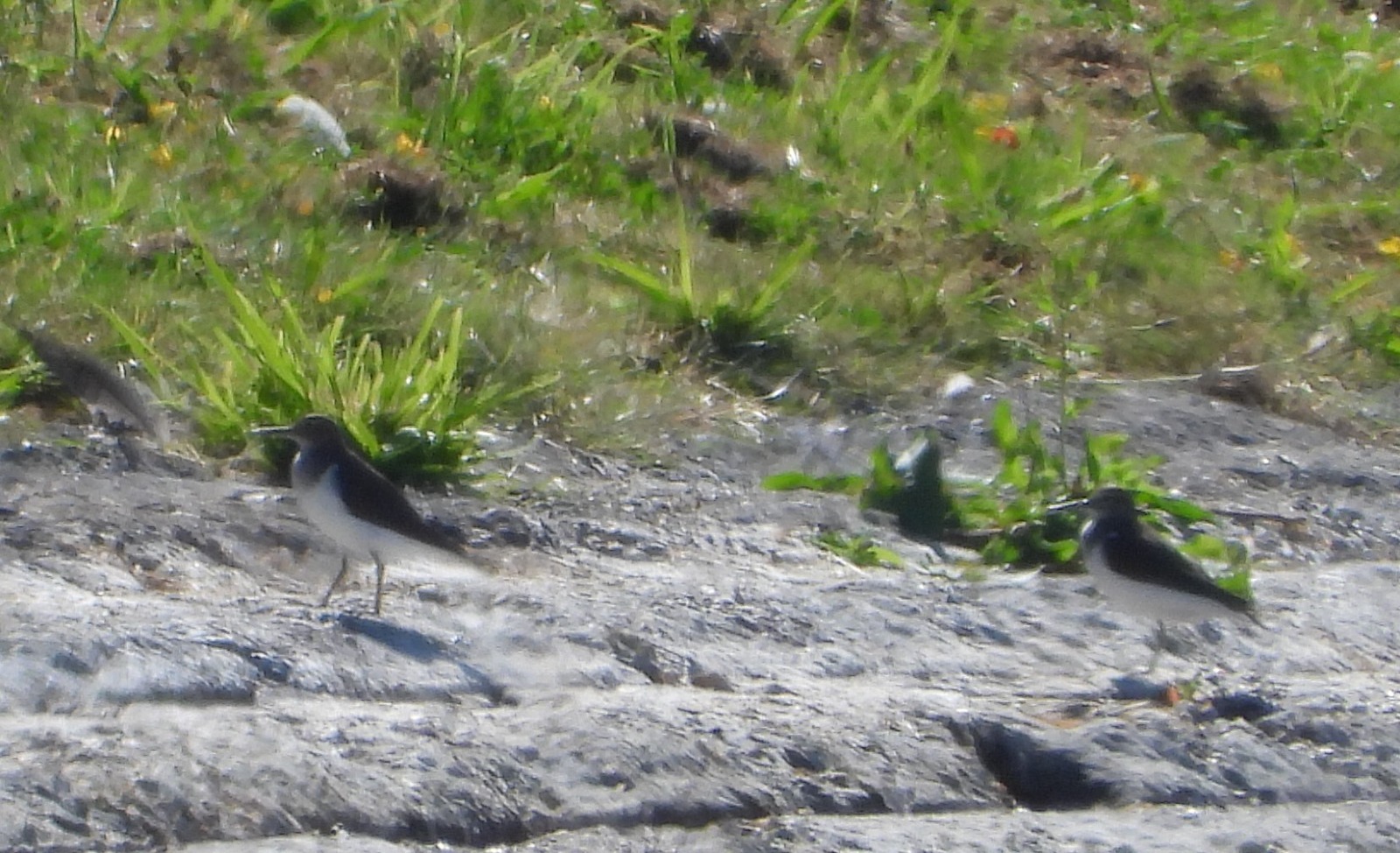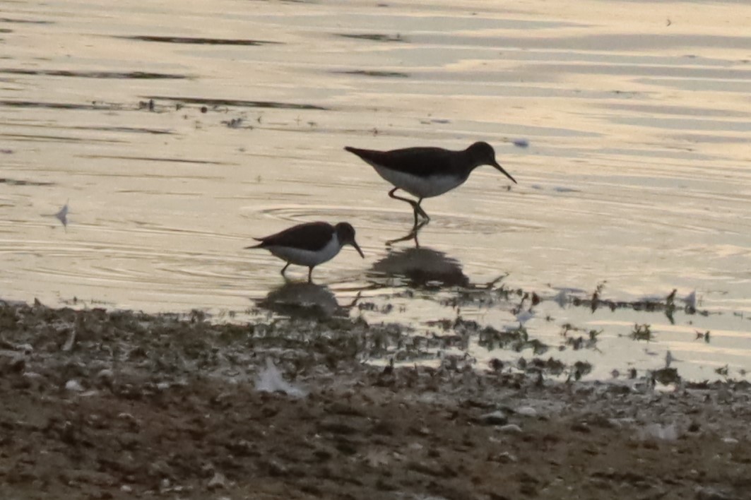 Tice’s Meadow: 2 Common Sandpipers and Green Sandpiper (R Seargent).