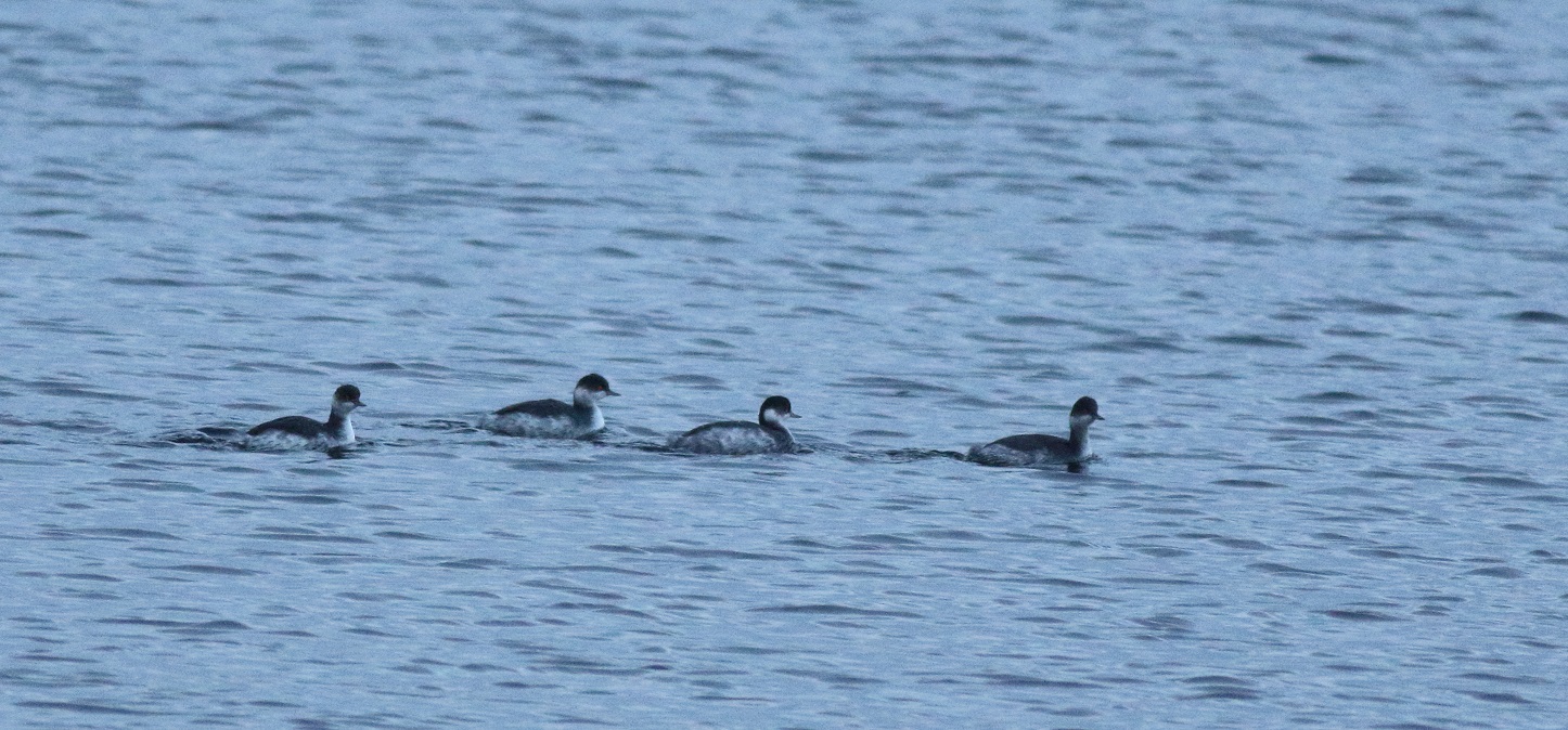 Pennymead Lake: 5 drake Goosander late afternoon (G Lewis).