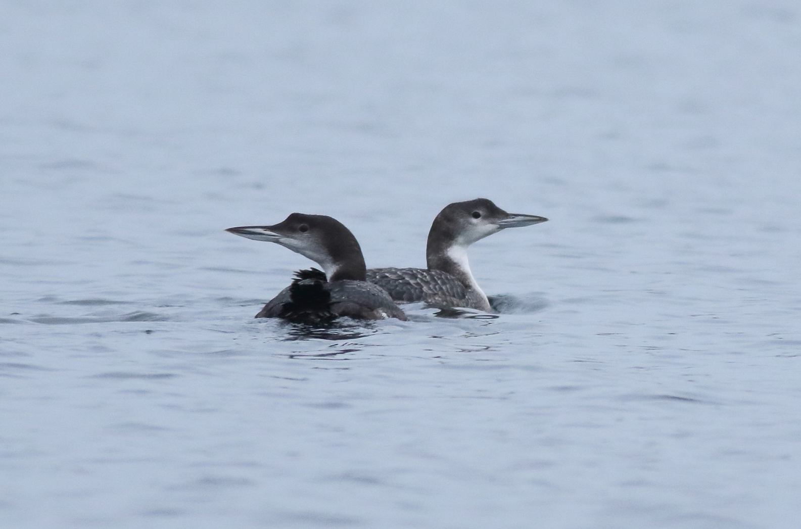 Island Barn Reservoir (no access): 2 Great Northern Divers still; view from Molesey Heath (T Quinn).