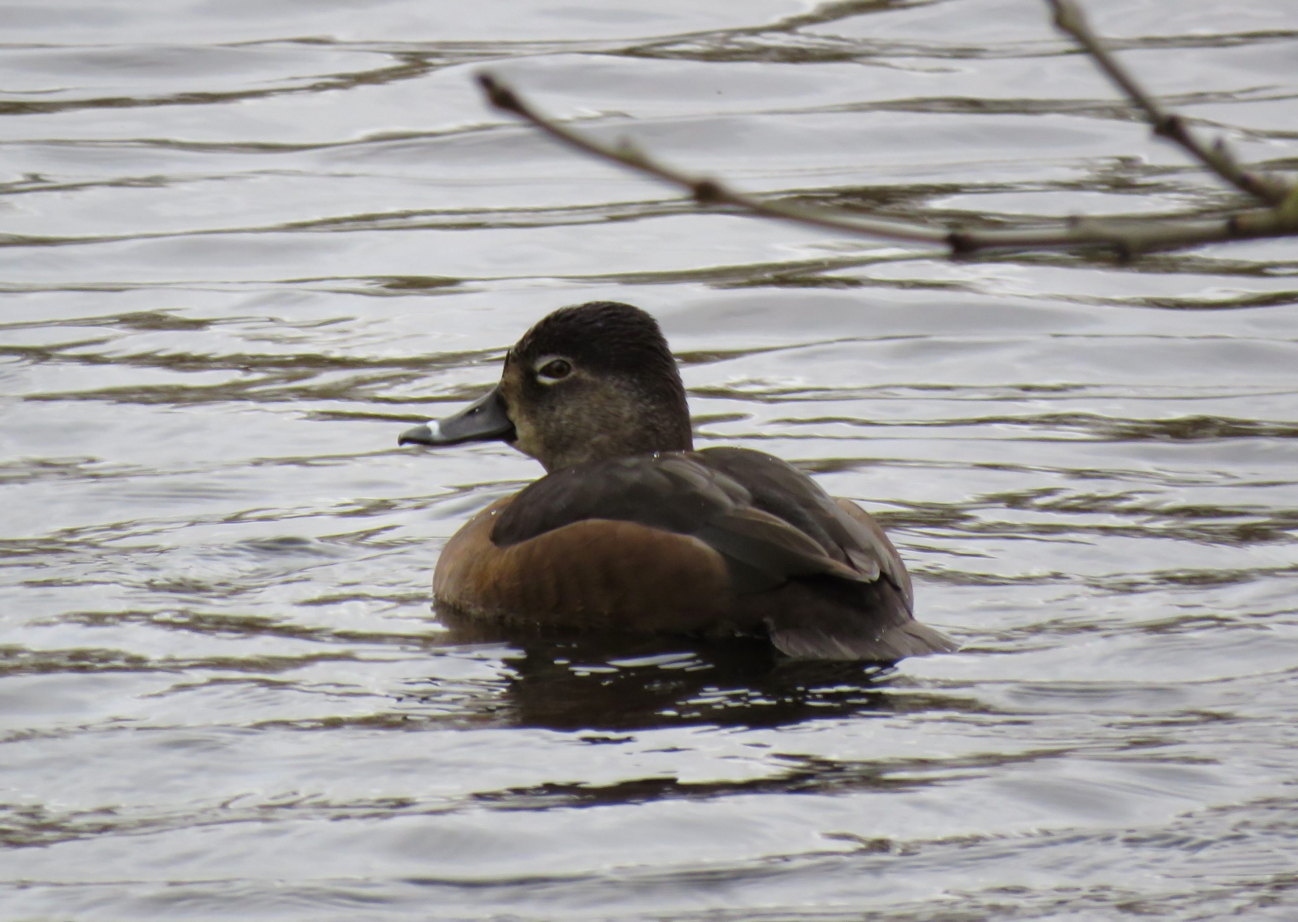 Reigate: female Ring-necked Duck on Priory Pond (M Elsoffer).