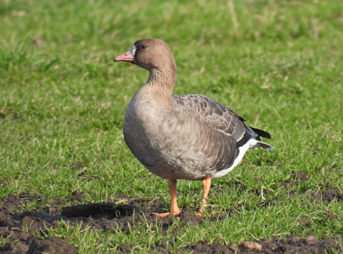 Westcott: 1st-winter White-fronted Goose with Greylags at Milton Court Farm (M Davis).