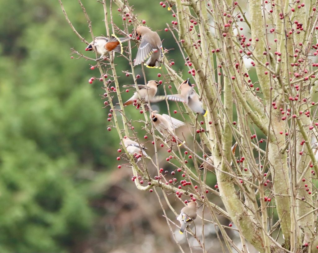 Farnham: 60+ Waxwings around library gardens (BirdGuides).