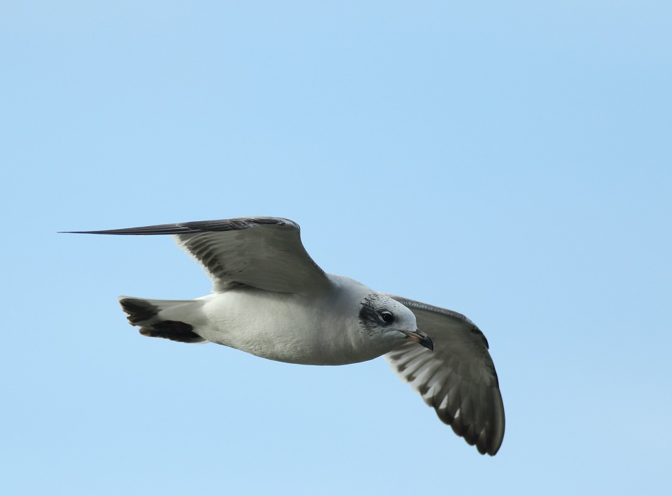 Holmethorpe SP: adult Mediterranean Gull over Water Colour Lagoons (G Hay).