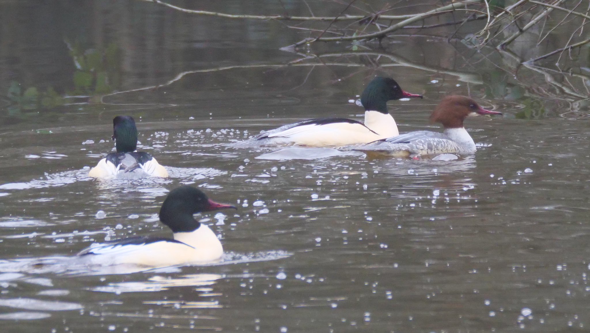 Mickleham: 4 Goosander on River Mole (A Manwaring).