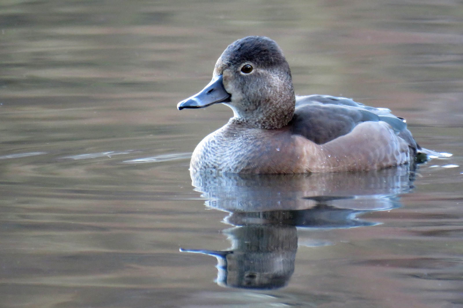 Reigate: female Ring-necked Duck on Priory Pond (G Hay).