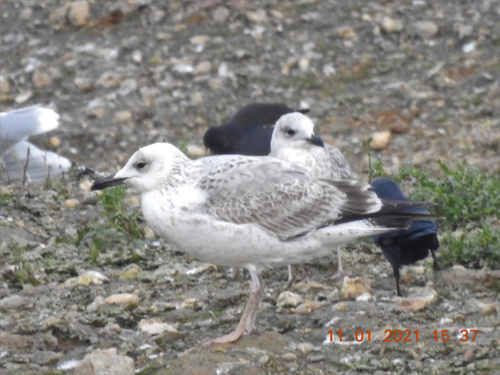 Beddington Farmlands: 1st-winter Yellow-legged Gull on Wet Grassland; also 4 Jack Snipe, 7 Water Pipits, 2 Green Sandpipers, 2 Shelduck and White Stork (A Dutta/N Gardner/Z Pannifer).