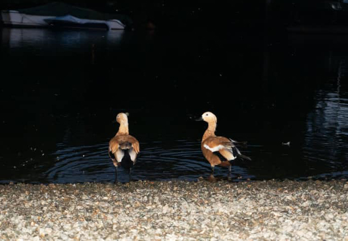 River Thames at Richmond: two Ruddy Shelduck (presumably feral) in evening (N Tsinonis)