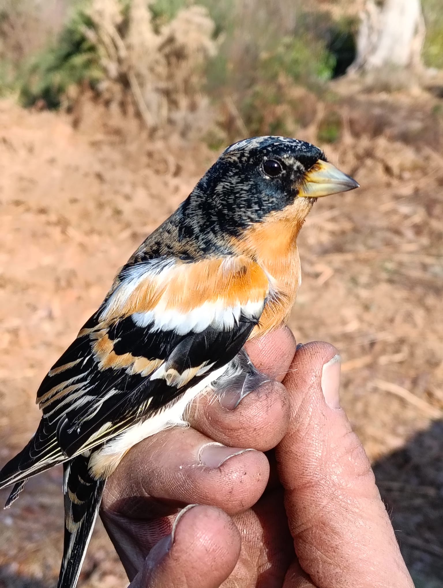 Crooksbury Common: male Brambling trapped and ringed (J Gates).