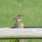 Tice’s Meadow: first-winter Brent Goose and Black-tailed Godwit still; also male Whinchat (trapped and ringed) and four Yellow Wagtails (TMBG).