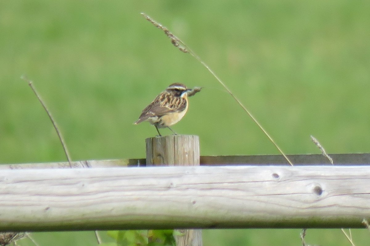 Brockwell Park: female Whinchat in fenced off meadow by BMX track (M Mac).