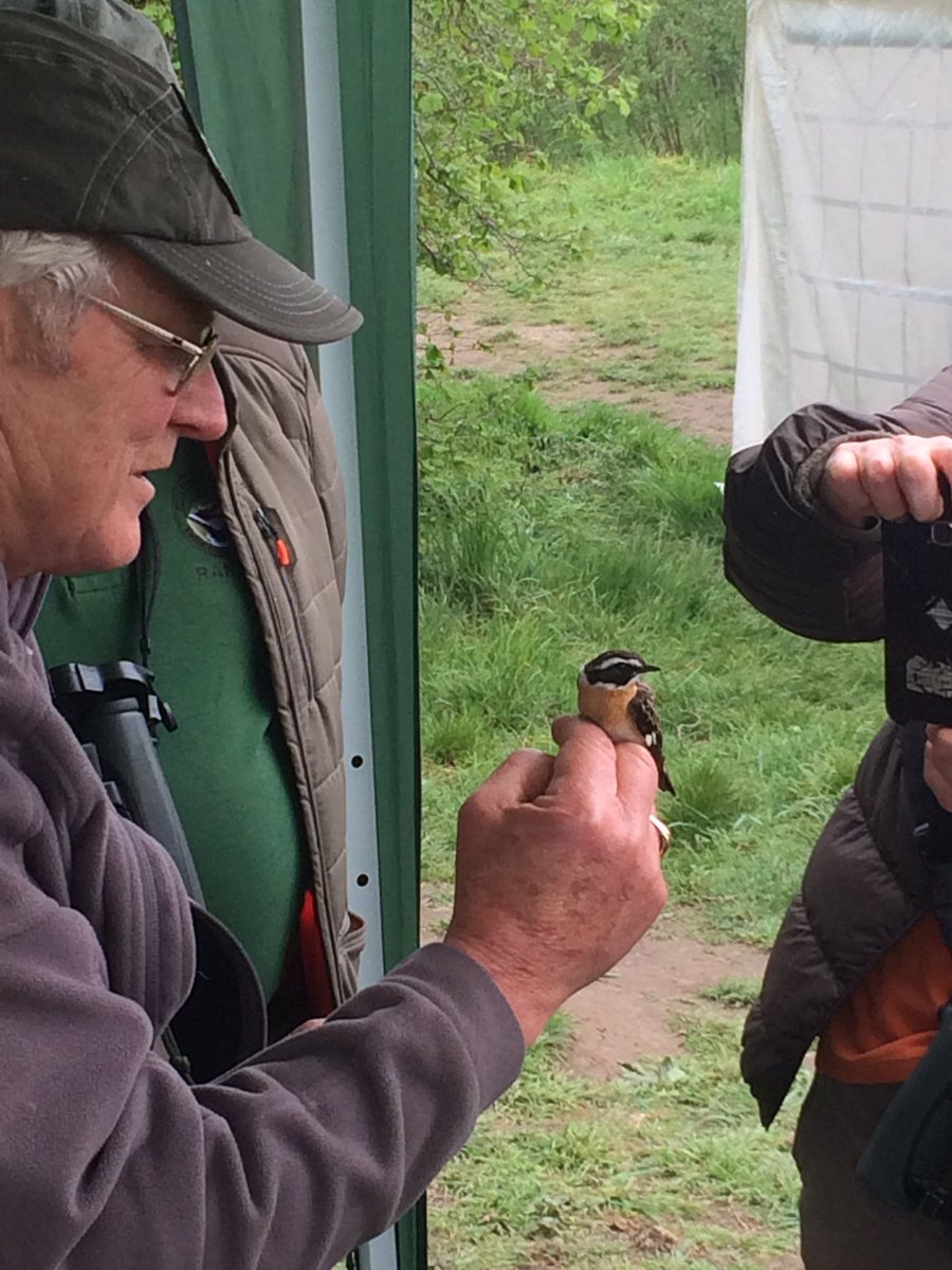 Tice’s Meadow: first-winter Brent Goose and Black-tailed Godwit still; also male Whinchat (trapped and ringed) and four Yellow Wagtails (TMBG).