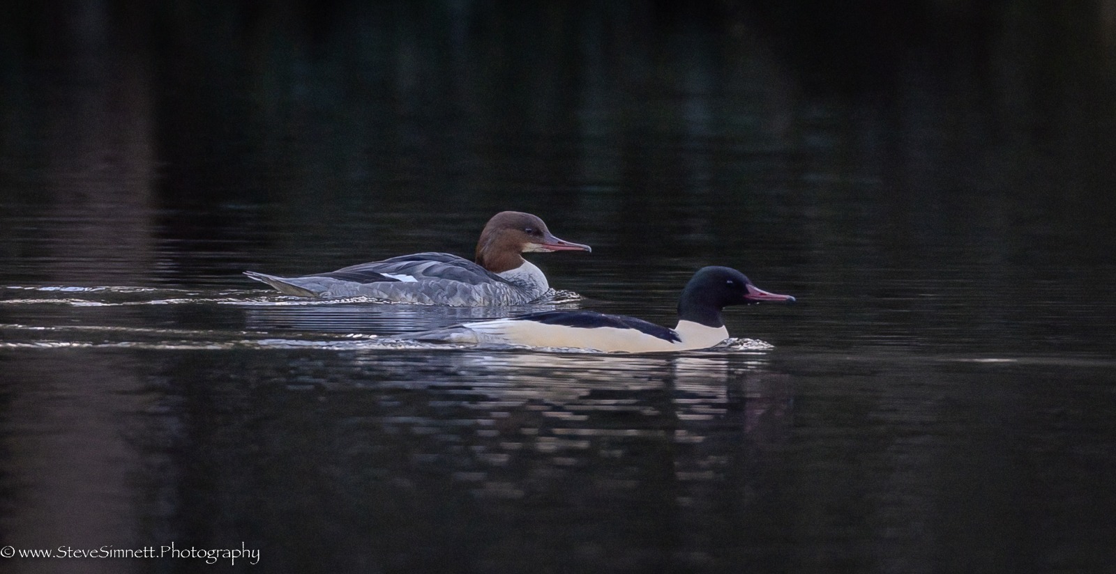 Cutt Mill Ponds: Goosander pair (R Seargent/S Simnett).
