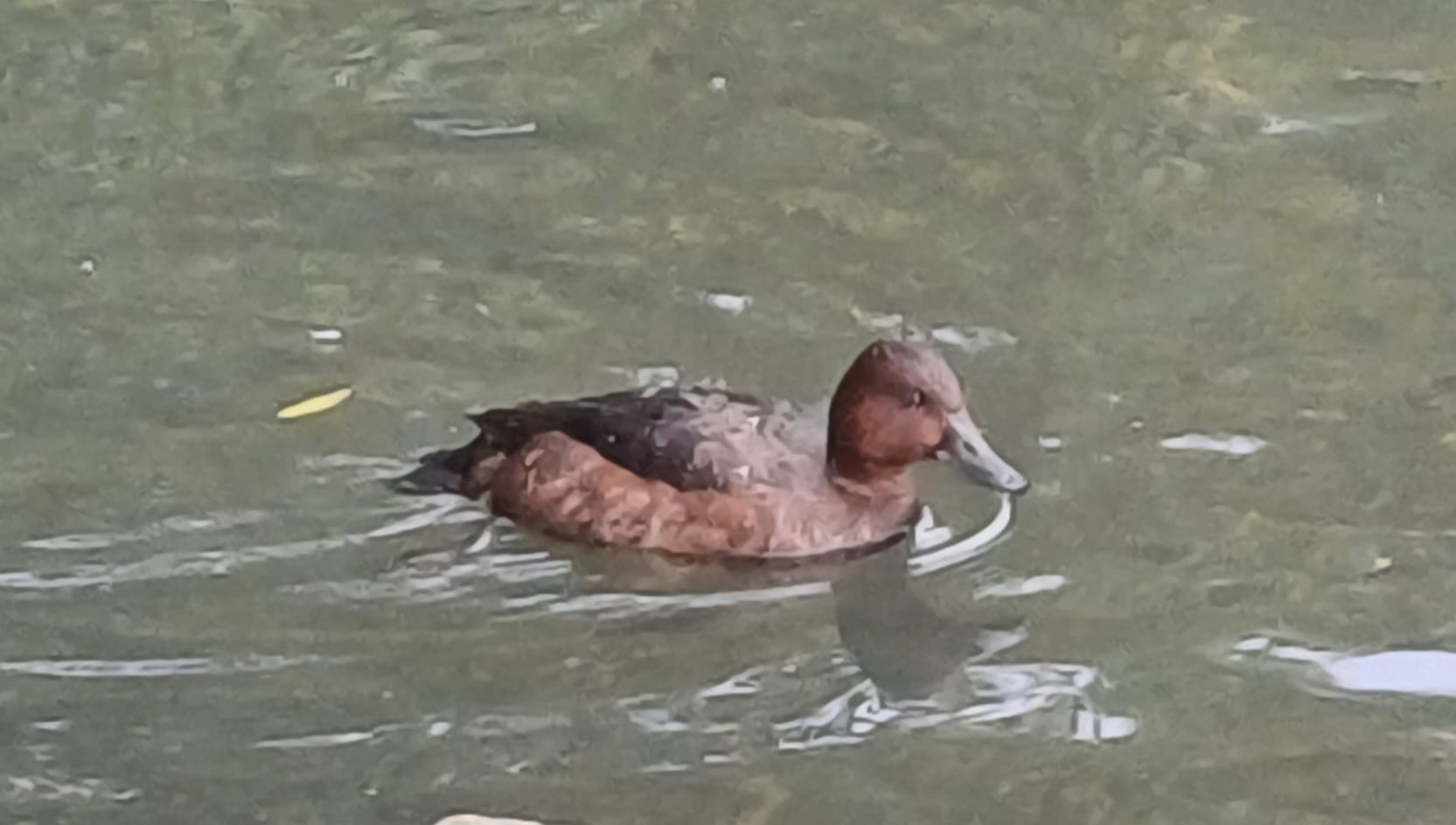 Tooting Common: juvenile female Ferruginous Duck on lake (BirdGuides).