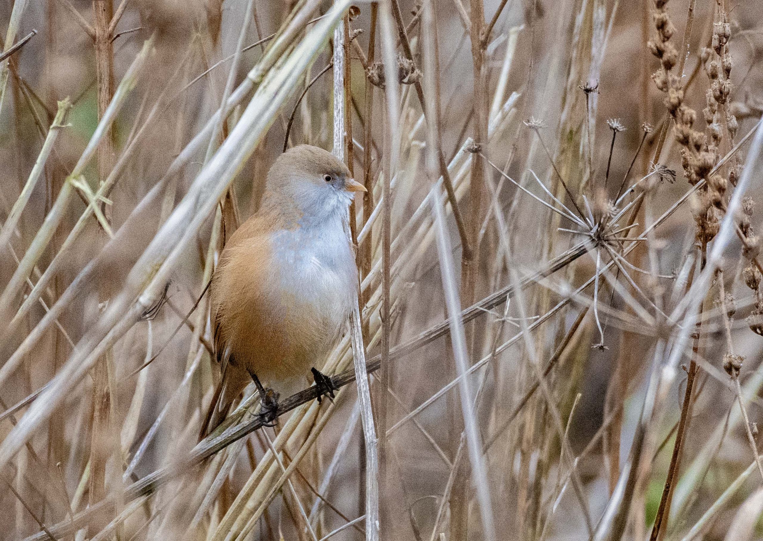 Shalford Water Meadows: female Bearded Tit at St Catherine’s Lock (D Brassington).