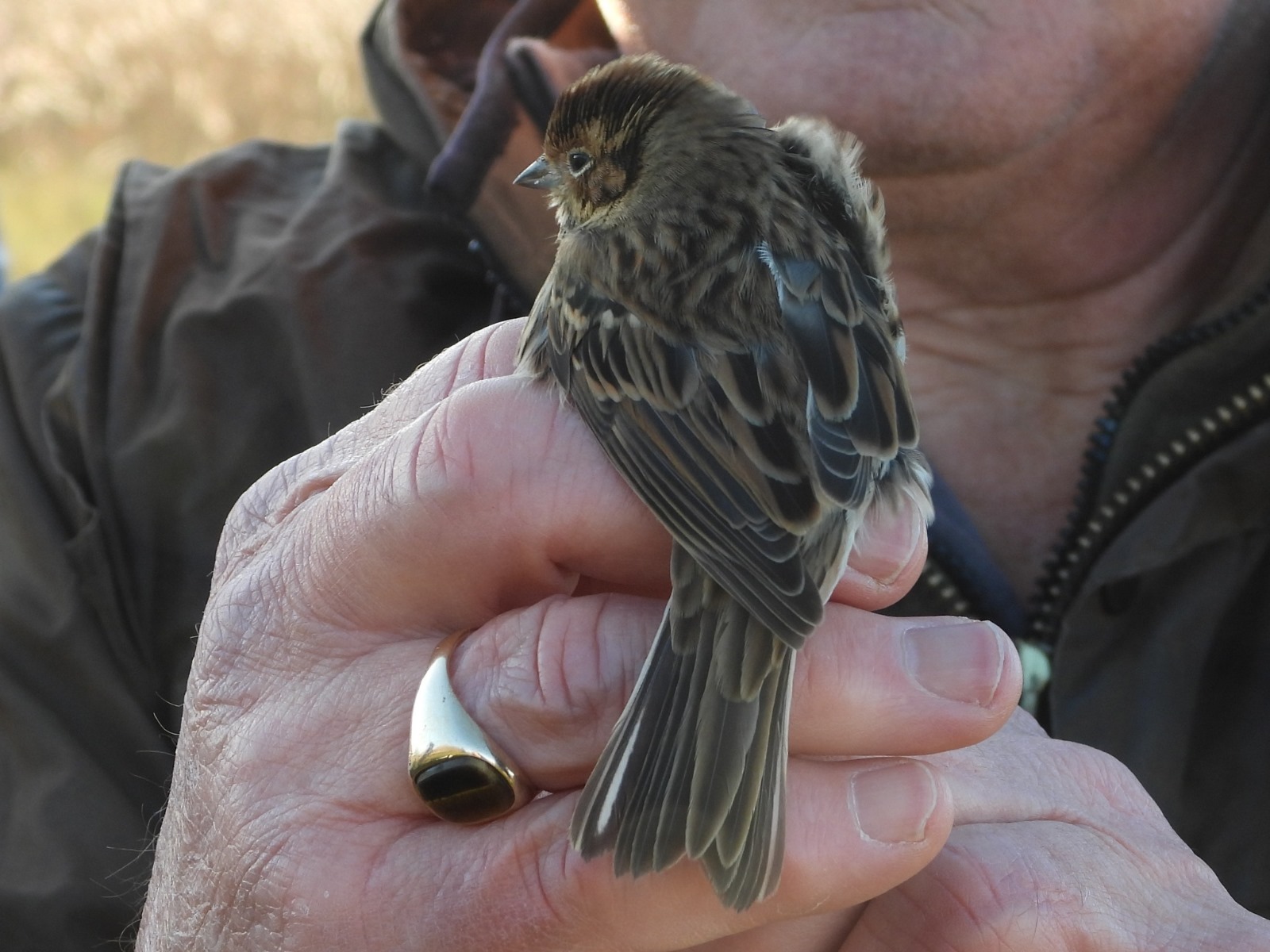 Tice’s Meadow: Little Bunting trapped and ringed in reedbed (R Dickey).