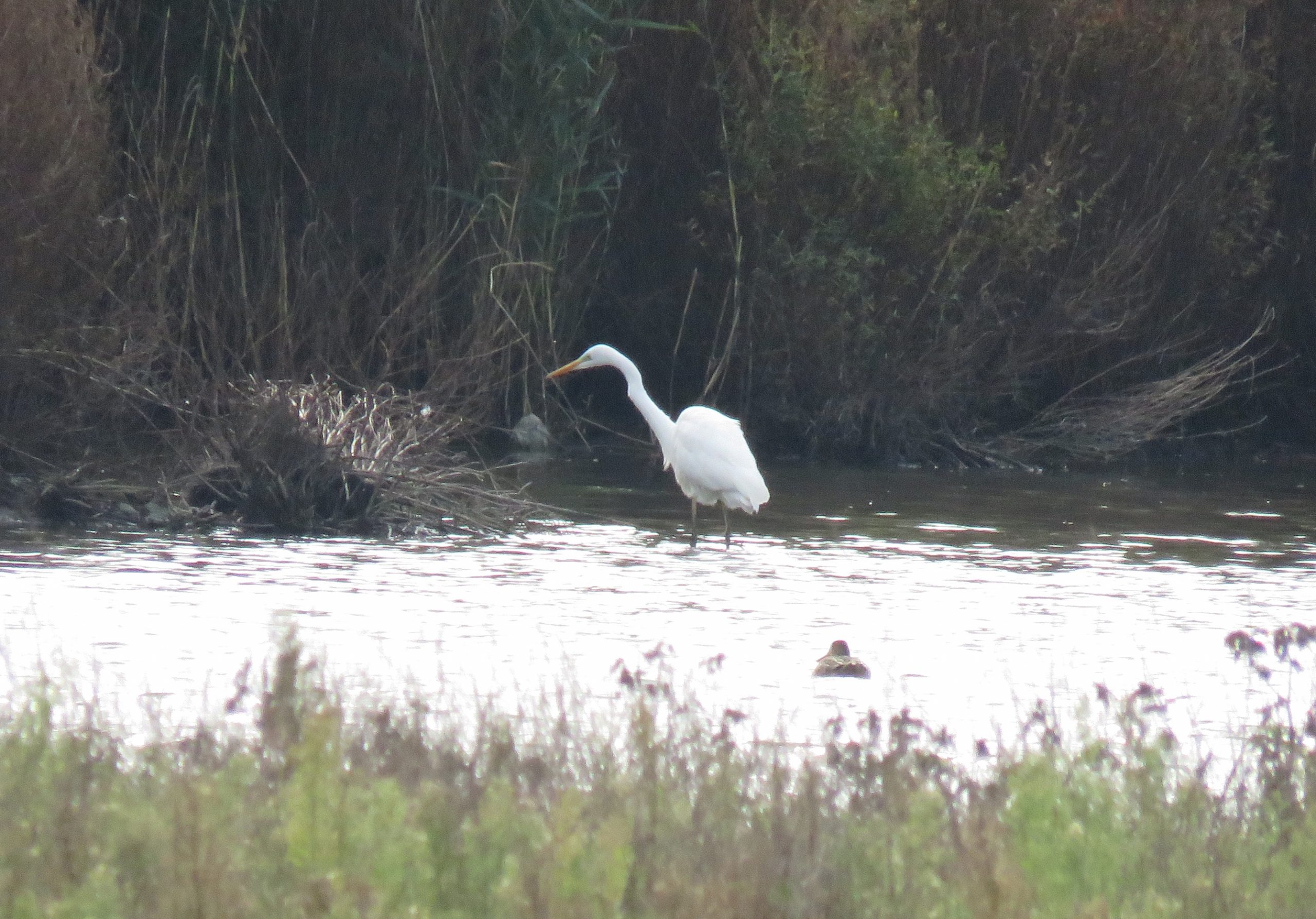 Beddington Farmlands: Great Egret, White Stork, Pintail and Shelduck (M Bravery).