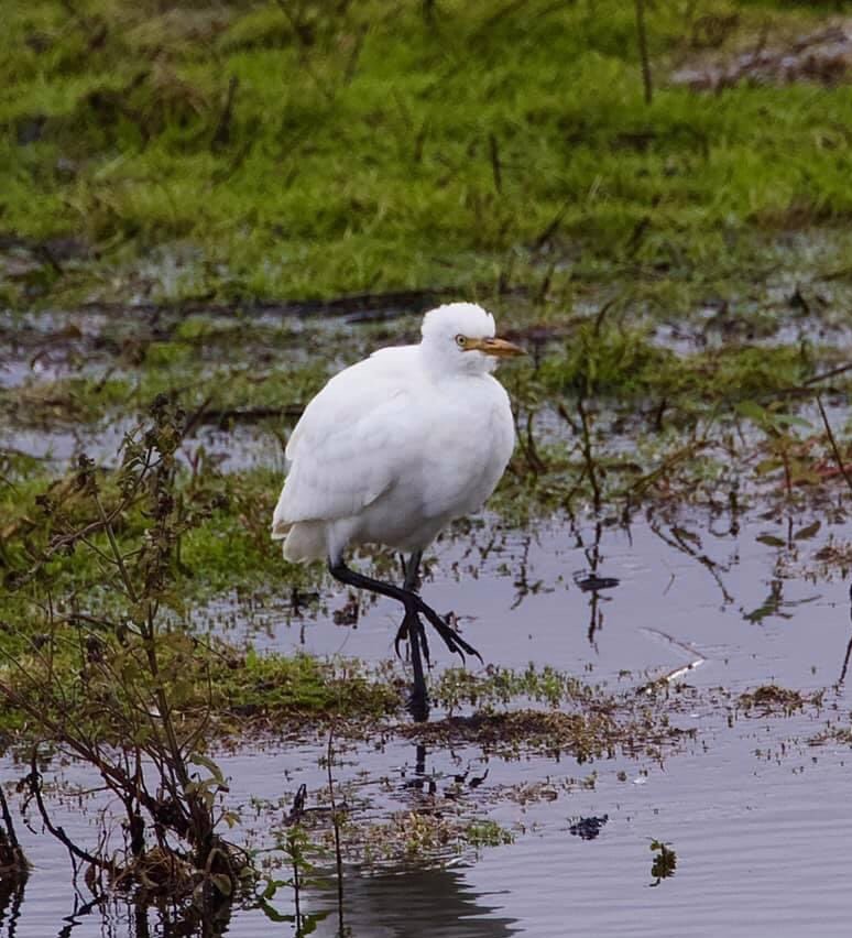 Esher: 3 Cattle Egrets in field by River Mole (N Tanner).