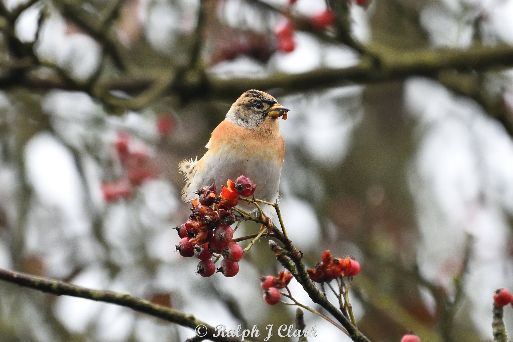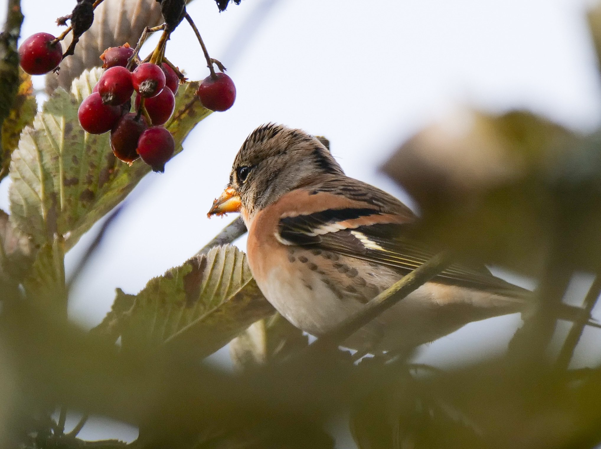 Sheepleas: 4 Bramblings by top car park (M Fincham).