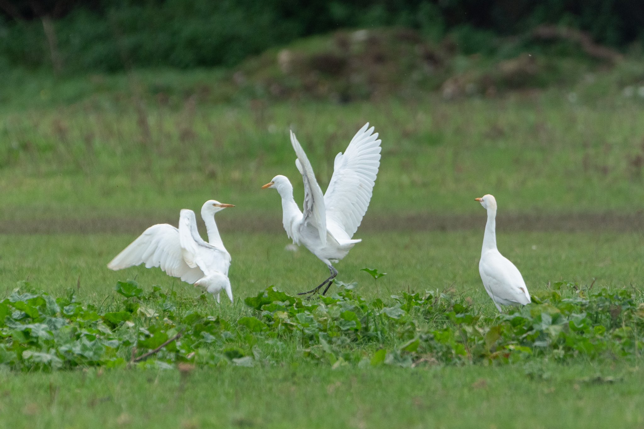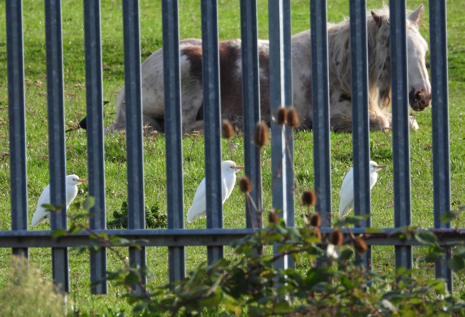 Esher: 3 Cattle Egrets in field by River Mole (S Musievski/A Quinn/C Turner).