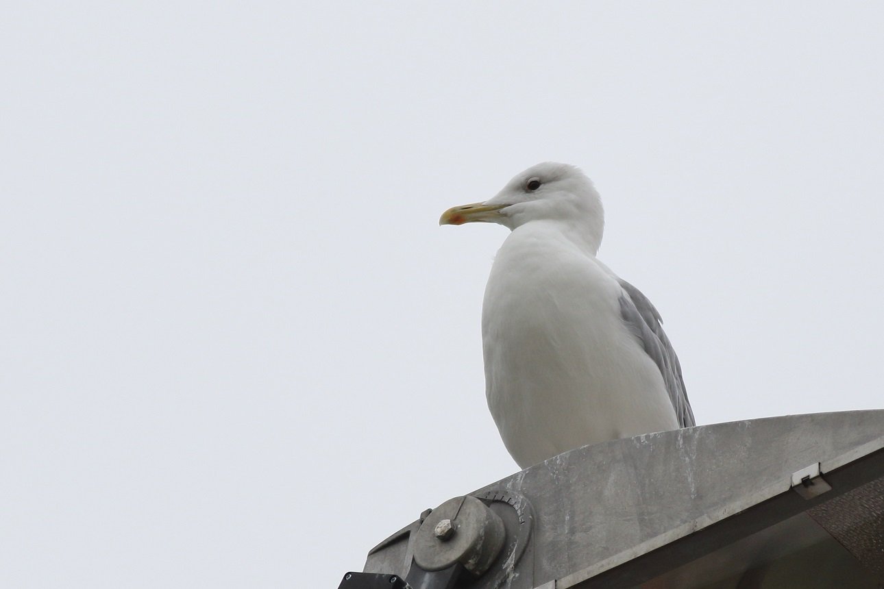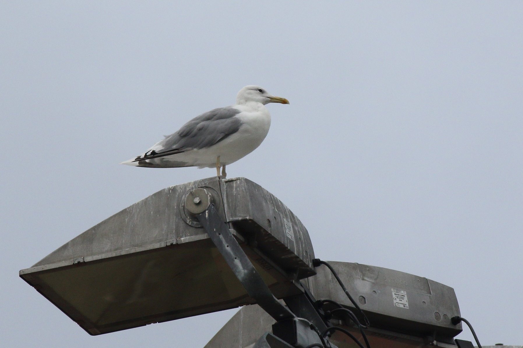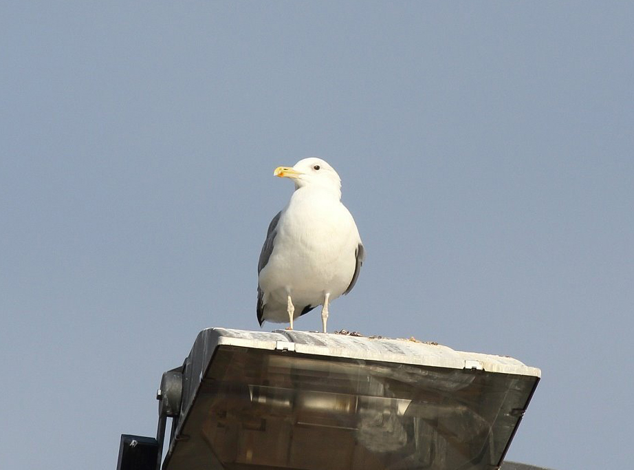 Walton-on-Thames: adult Caspian Gull still on floodlight by EXCEL football pitches (D Harris/B Spencer).