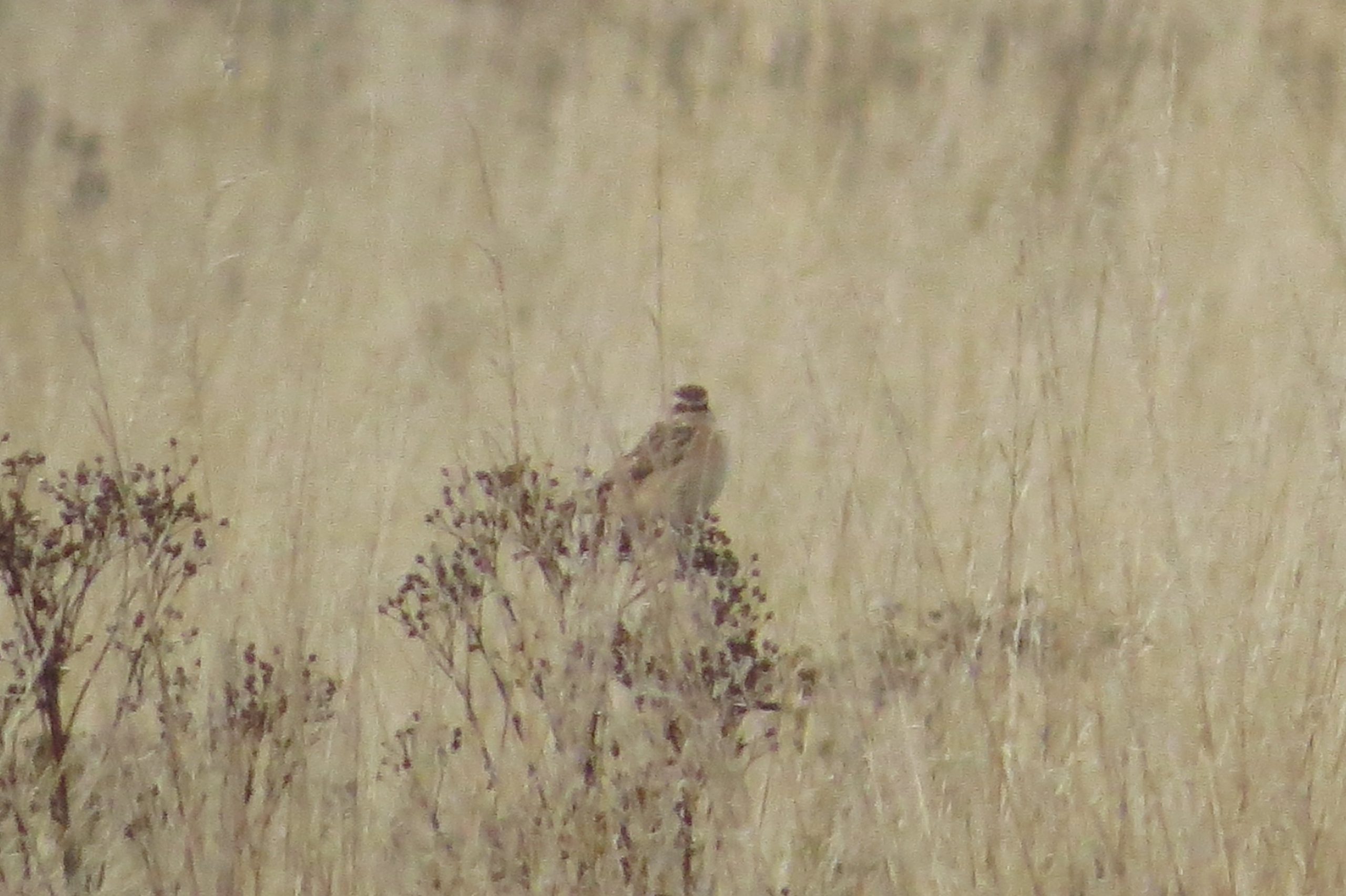 Beddington Farmlands: Grasshopper Warbler; also Dartford Warbler, 3 Pintail, Whinchat, Yellow Wagtail, 8 Green Sandpipers, Common Sandpiper and 3+ Wheatears (D Bulling/N Gardner).