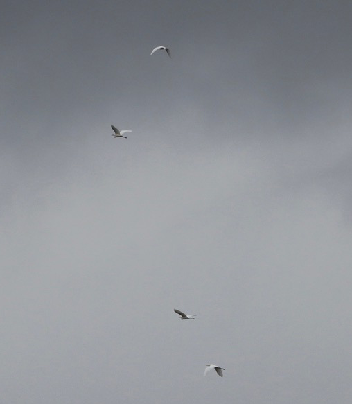 Holmethorpe SP: 4 Great Egrets west over The Moors and 3 Whinchats at Mercers Quarry (G Hay).