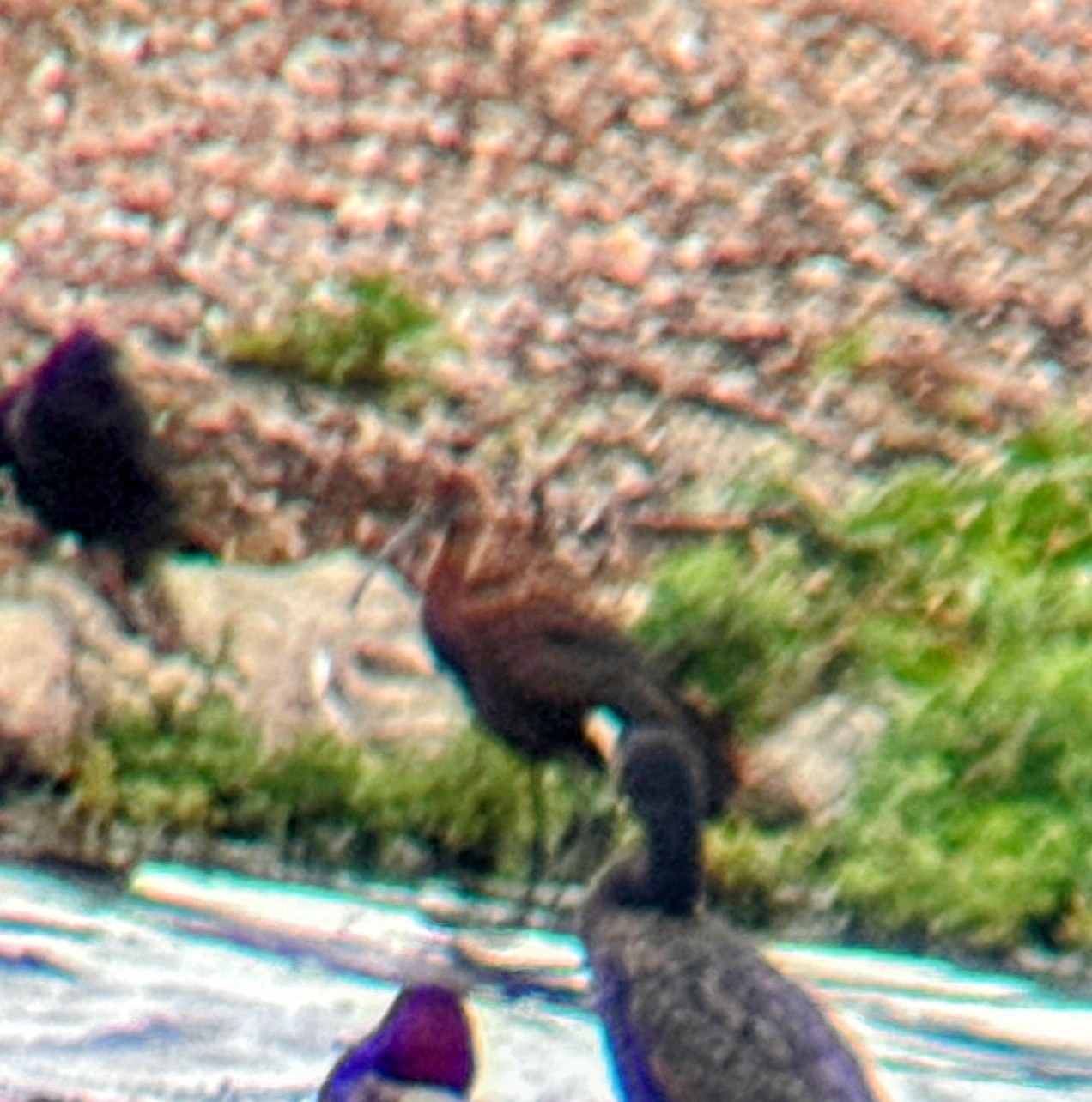 Beddington Farmlands: adult and juvenile Glossy Ibises on Phase 3; also Great Egret, 4 Green Sandpipers and Common Sandpiper (A Dutta/I Jones).